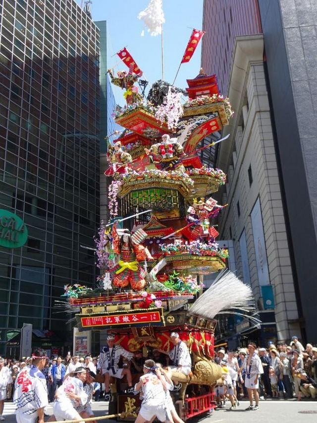 Ce festival se tient généralement chaque année du 1er au 15 juillet. À cette occasion des chars magnifiquement décorés, et faisant parfois une tonne pour dix mètres de haut, sont installés dans certaines parties de la ville. D'autres plus petits, appelés Kakiyamakasa, semblent flotter grâce aux dizaines d'hommes qui les portent. De nombreuses personnes portant des manteaux happi (toban happi et mizu happi) pendant le festival. Plus d'informations ici.