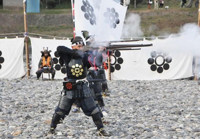 Les artilleurs vêtus d'une armure traditionnelle proposent une performance impressionnante avec des armes de la période Edo (1603-1868). Les artilleurs du clan Iwakuni effectuent des démonstrations d'armes à feu de style Ishida. Ce sont des événements palpitants, où le tonnerre de chaque volée fait vibrer le public. Les représentations ont lieu toute l'année, y compris le jour du Nouvel An et pendant le festival du pont de Kintai. Plus d'informations ici.